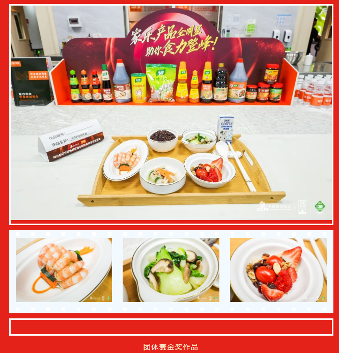 食美樂代表隊充分汲取多次廚藝大賽成功經(jīng)驗,從整體搭配、營養(yǎng)均衡、烹飪方法、觀感食欲、口感味道、成品展示等多角度綜合、系統(tǒng)考慮,設計的參賽作品以粗細糧搭配、創(chuàng)新實用、色澤鮮明、營養(yǎng)全面的特點,并輔以精心測算和搭配的營養(yǎng)結構,成功征服眾多餐飲界資深專家和現(xiàn)場評委,最終摘得團體賽金獎、銀獎兩大榮譽!